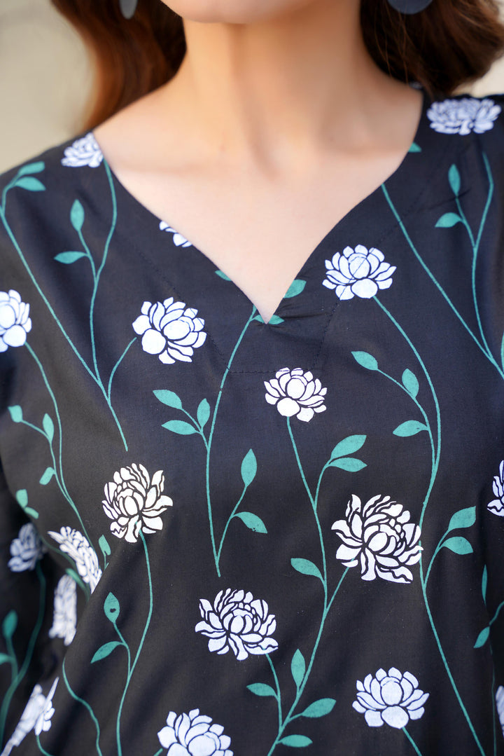 A trendy black printed cord set crafted from premium linen fabric. The rich black hue and stylish print create a perfect blend of comfort and elegance. Ideal for casual outings or semi-formal events, this outfit offers a modern, effortless look with a touch of sophistication.