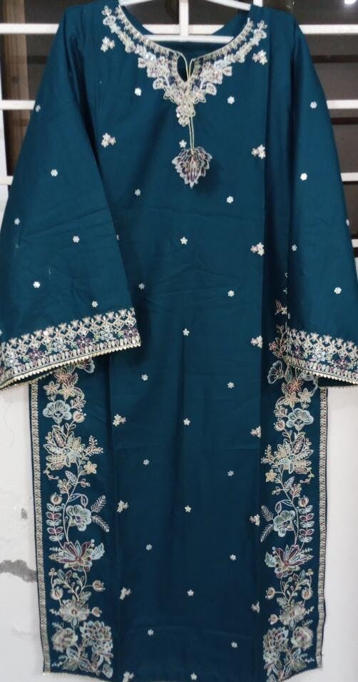 Discover the perfect blend of comfort and style. This beautiful 3-piece dress offers a flattering fit with a chic, embroidered top and a elegant kurta, ensuring you look and feel fabulous at your next event.